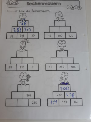 Sätze schreiben zu einem Wimmelbild, Lernwörter in Rätseln verpackt, Rechenmauern, Unter Spannung, rechnen und anmalen, Zahlen legen mit Stellenwertmaterial, ...